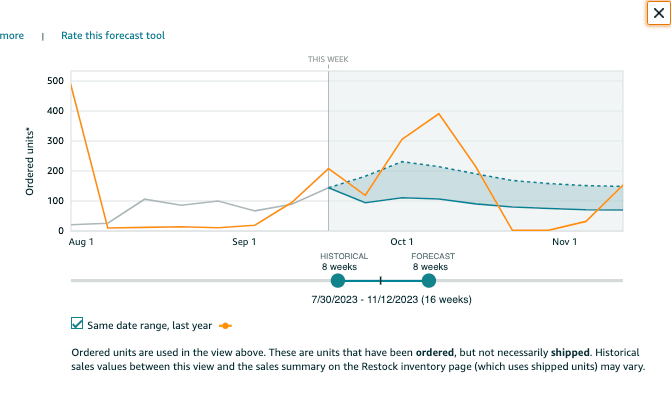 So, if you know Amazon’s sales forecast for an ASIN — both Mean and Optimistic — you now know the “target” that you need to exceed if you’re padding your stats.